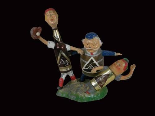 Die Cast aluminum Blatz Beer Advertising Baseball Players, 16 inches tall, 18 inches wide, some paint chips.