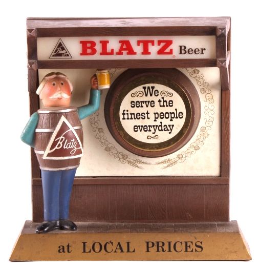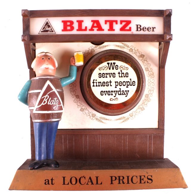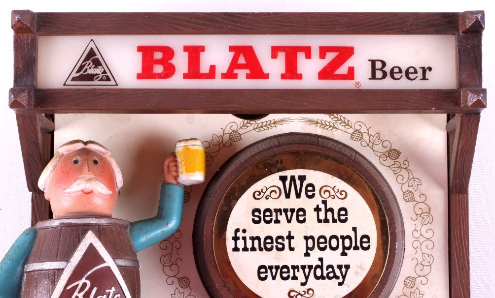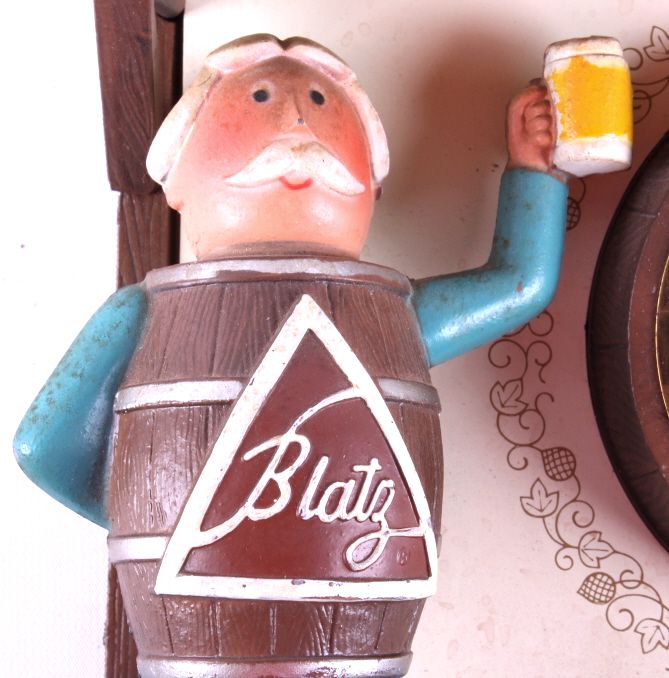This is an original Blatz Beer advertising light. It is made from cast iron. The light fixture has been removed and could easily be replaced. This piece is in very good condition. It has retained its bright, vivid colors. The Blatz Beer advertising light measures 11" x 10.5".