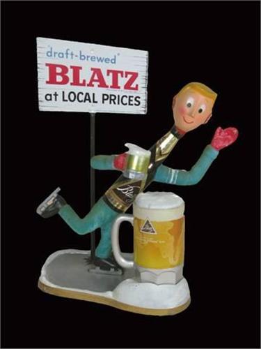 Die Cast aluminum Blatz Beer advertising (Skater), 18 1/2 inches tall, very good condition.