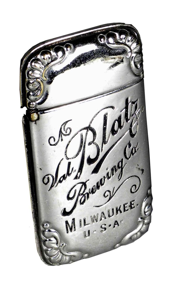 Blatz Brewing Company Match Safe, Milwaukee, WI. Nickel plated brass. Some minor surface scratches otherwise excellent condition. 1 1/2 X 2 7/8 inches.