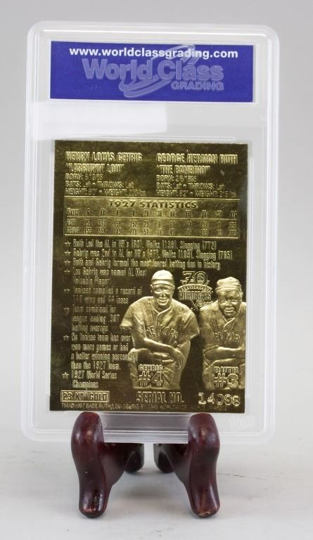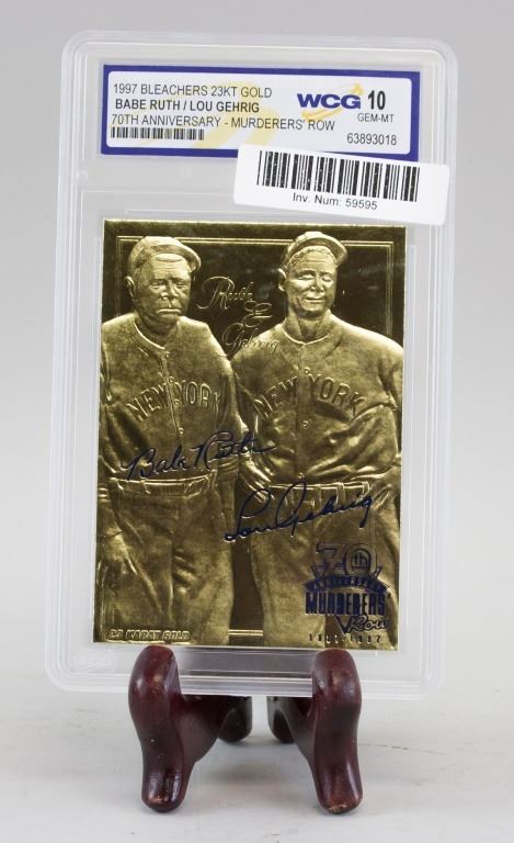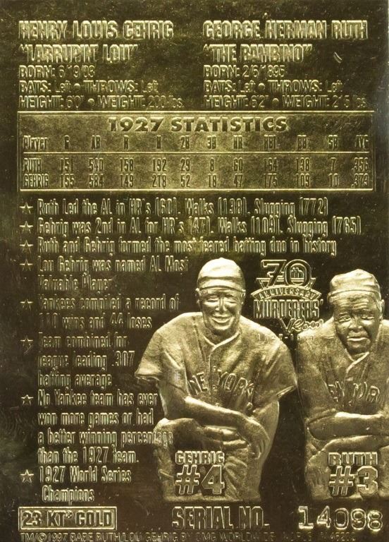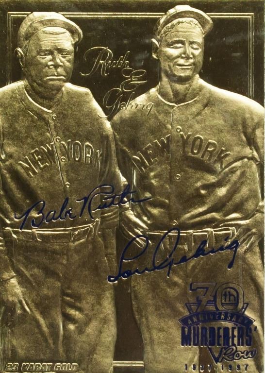 Bleachers 1997 23kt gold 70th anniversary Murderers' row trading card. Featuring Babe Ruth and Lou Gehrig.