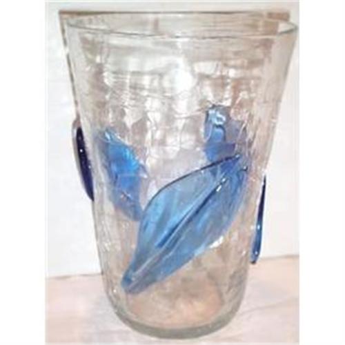 <tr><td>Title:Blenko Crackle Blue Leaf Tall Vase</td></tr>