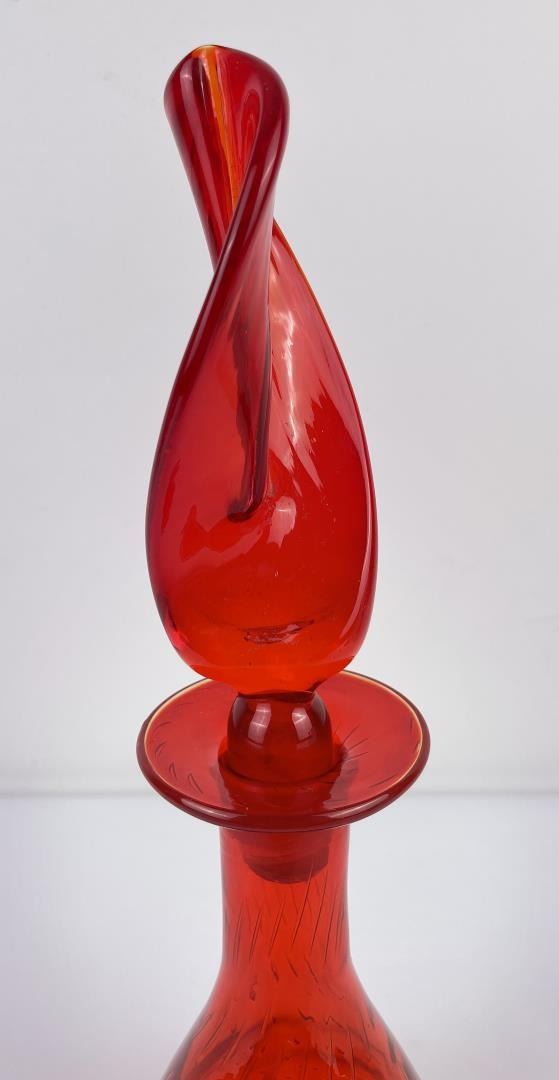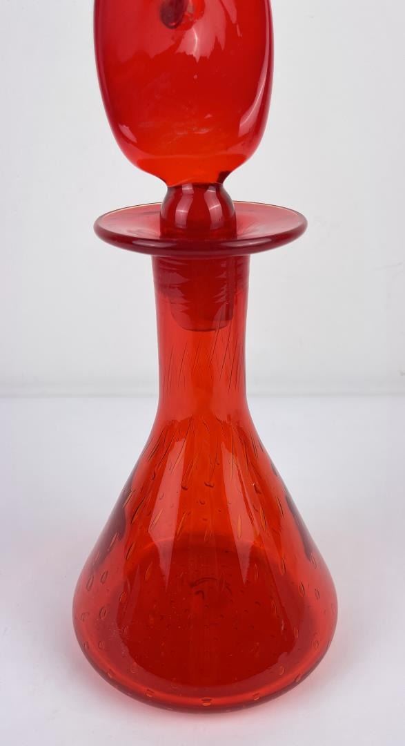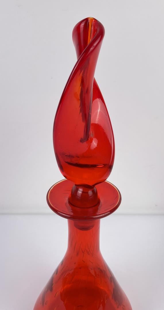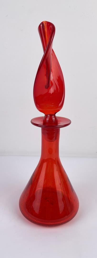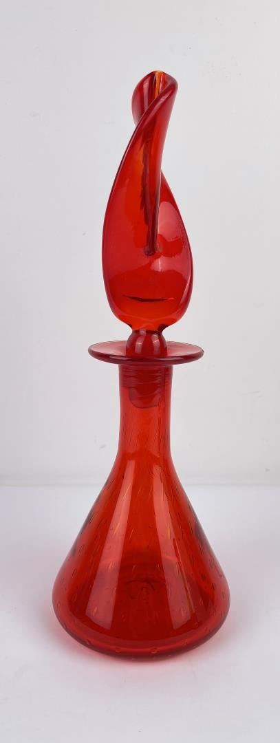 Very nice decanter. Controlled bubble with twist stopper. Scarce. 16" tall including stopper.
