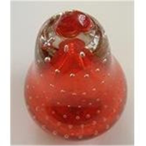 Beautiful Ruby Blenko paperweight in the shape of a pear with visible controlled bubbles and a broken pontil on bottom. Approx. 4" tall, mint condition