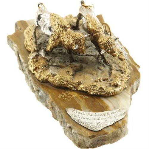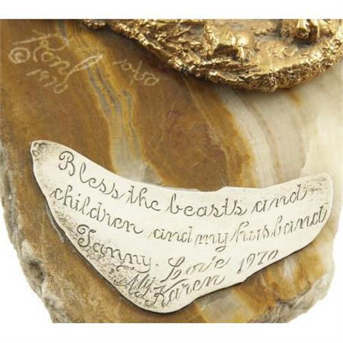 <B><I>Bless the Beasts and Children</B></I></B></I><B> Commemorative Gift to Stanley Kramer.</B></I> An intricately cast sculpture of two bison, given to Stanley Kramer from his wife Karen to commemorate the filming of his 1971 film <I>Bless the Beasts and Children.</B></I> A placard attached to the top of the piece reads "Bless the beasts and children and my husband Tanny. My love, Karen, 1970." In Excellent condition, measuring 3" in overall height and an 8" base. <I>From the Stanley Kramer Estate.</B></I><BR><BR><b>Shipping:</b> Miscellaneous Collectibles, Larg (<a target="_blank" href="http://www.heritageauctions.com/common/shipping.php">view shipping information</a>)