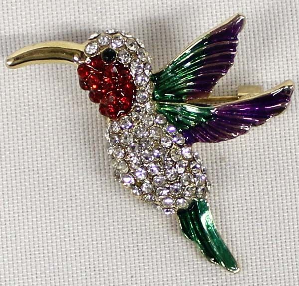 Bling Bling Hummingbird Pin, measures 1.75'' x 1.75''