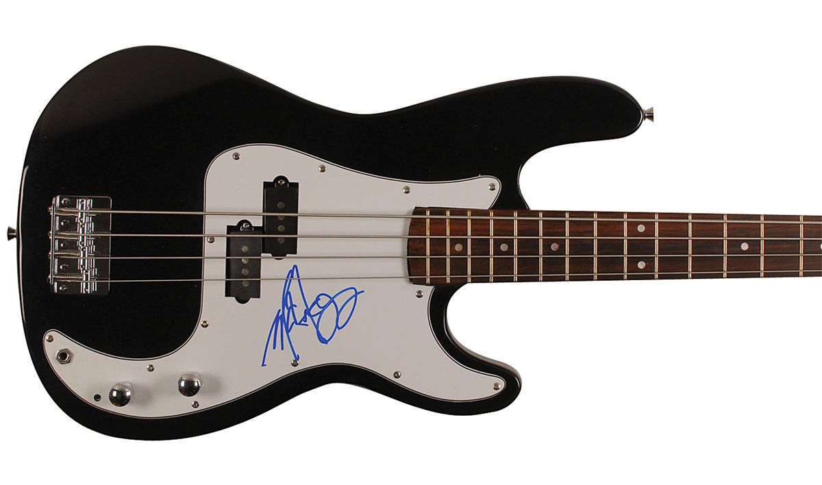 Black-bodied Stedman Pro P-Bass guitar, signed on the white pickguard in blue felt tip. In fine condition, with both pickups recessed from the pickguard. Oversized.