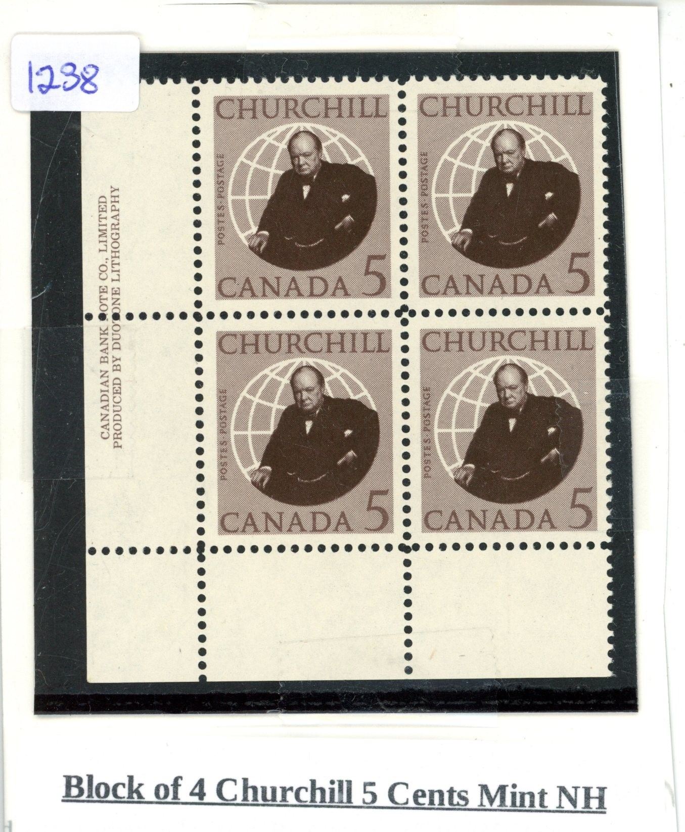 Block of 4 Churchill 5 Cents Mint NH