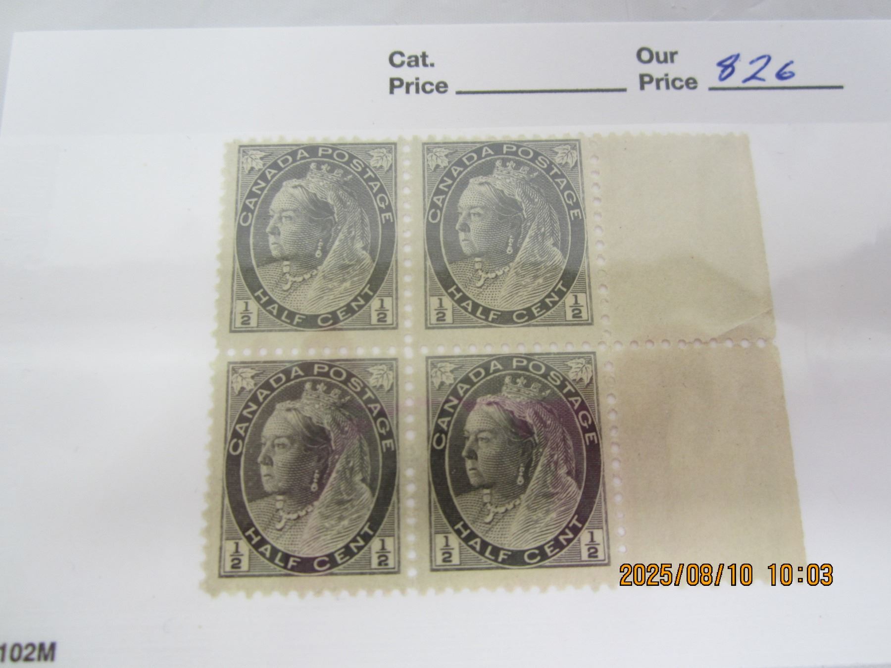 Block of 4 Queen Victoria 1/2 Cent OG Never Used