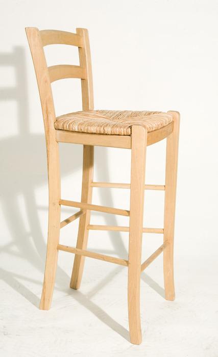 Blonde Barstool with Wicker Seat and Slated Backrest