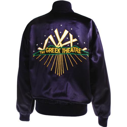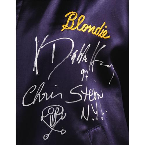 <B>Blondie Signed Tour Jacket.</B></I> A blue satin jacket with gold lining and gold-and-green piping on the sleeves, with a large Greek Theatre logo on the back (Blondie played there on August 15, 1979). Dated 1997 and signed by Debbie Harry and Chris Stein in silver marker under the Blondie logo on the left breast, the jacket is a women's size Medium. In Excellent condition.<I>Accompanied by LOA from PSA/DNA.</B></I><BR><BR><b>Shipping:</b> Clothing, Costumes & Jerseys (<a target="_blank" href="http://www.heritageauctions.com/common/shipping.php">view shipping information</a>)