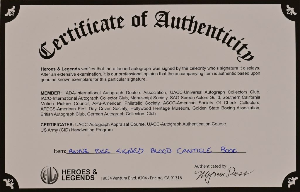 Blood Canticle Anne Rice signed book. BK480