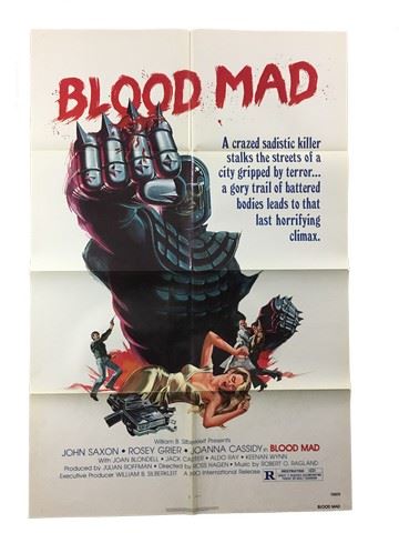 Blood Man (PRO International Pictures, 1979). Rare Original One Sheet Title. Litho. Movie renamed The Glove. Starring: John Saxon and Joanna Cassidy. There are fold lines, marks, stamps. Very Fine. (27" X 40").