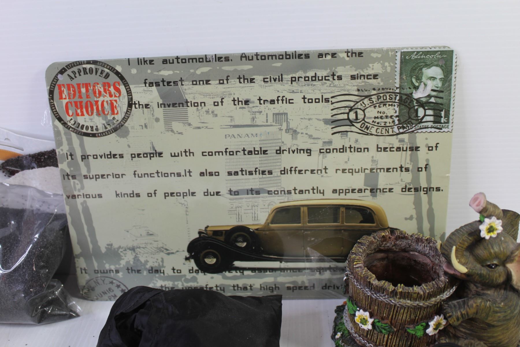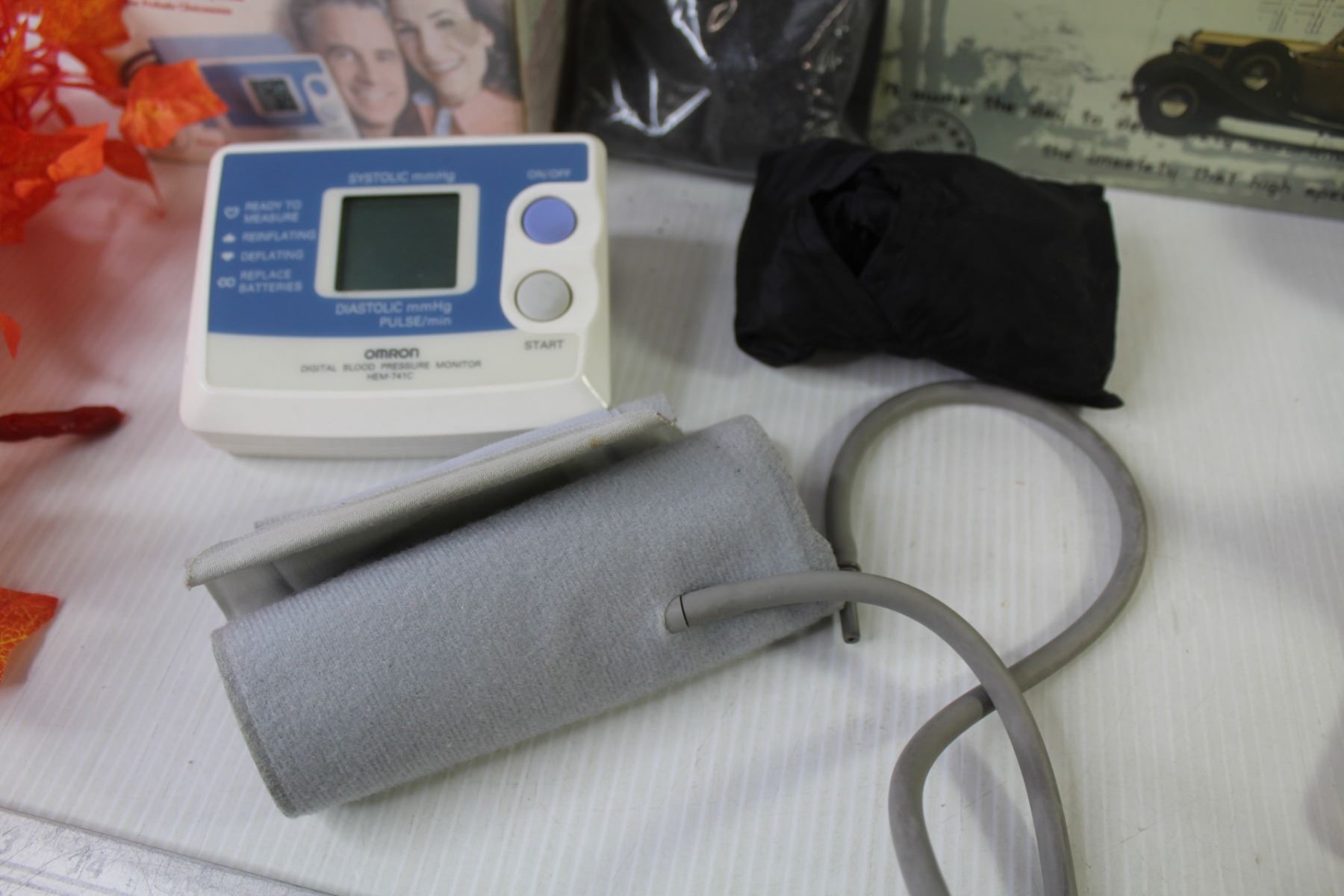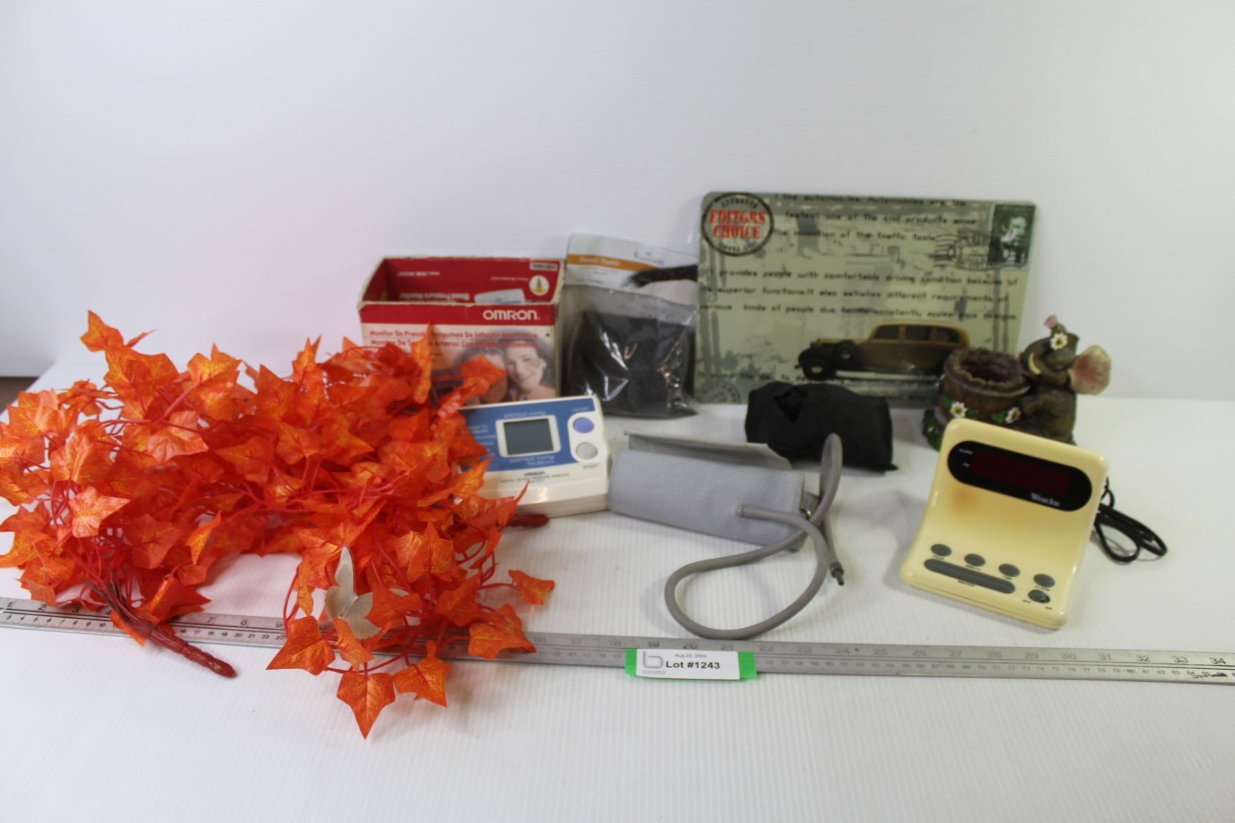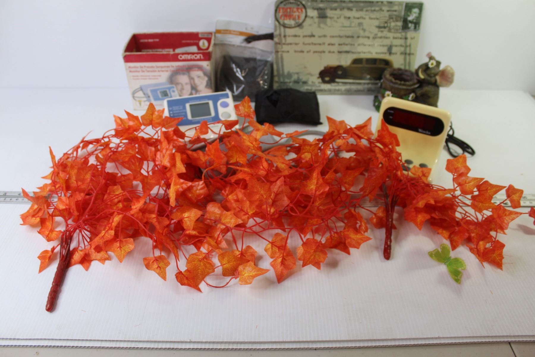 Blood Pressure Monitor - Elephant Pot/Vase - Westclock Alarm Clock - Black Decorative Sand - Editors Choice Tin Sign (8" x 12") - Orange Leaf Decor