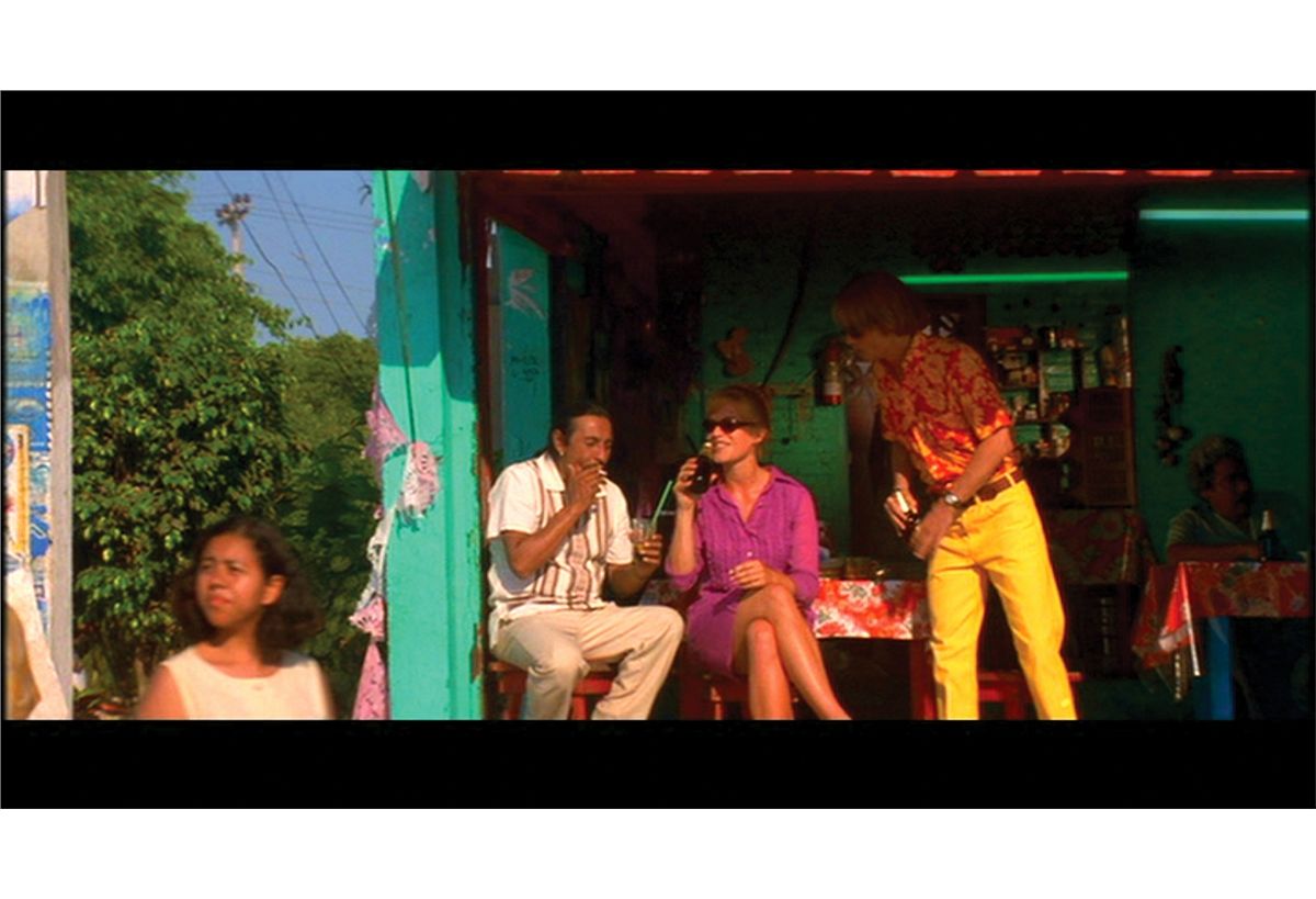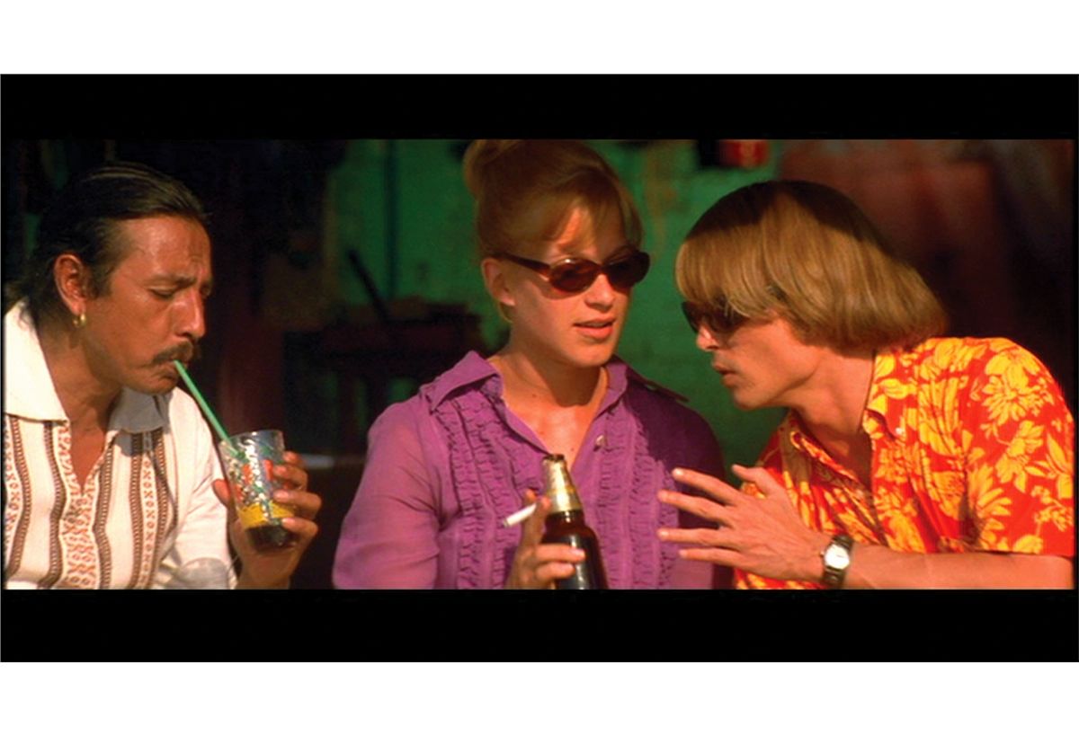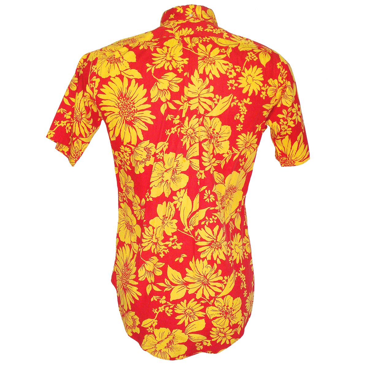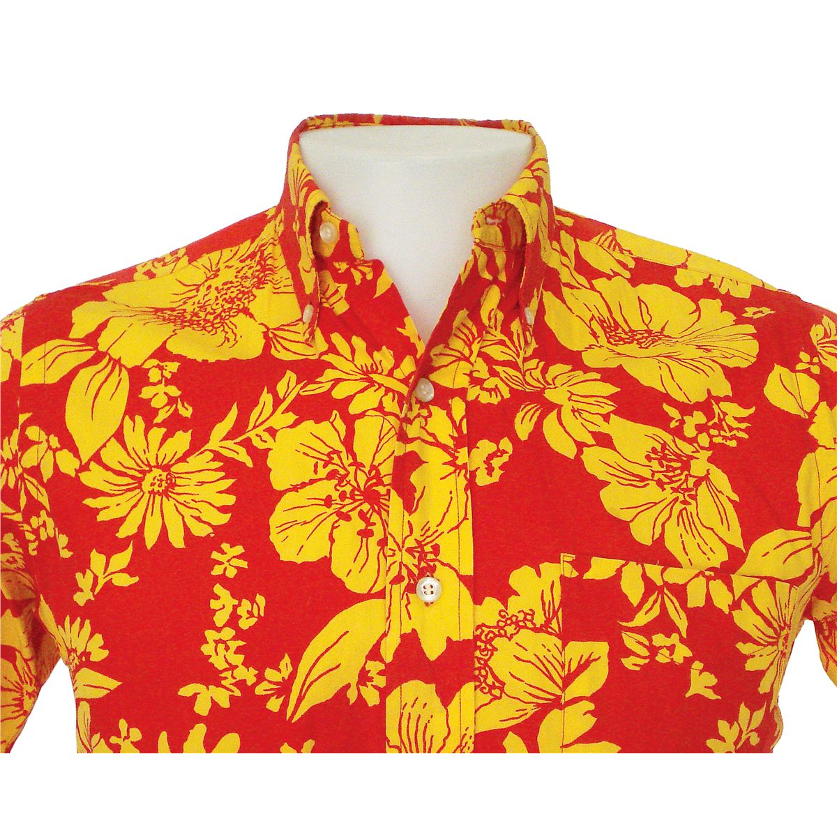 This red and yellow tropical print short-sleeve, button-front shirt was worn by Johnny Depp in his portrayal of the character George Jung in the 2001 motion picture Blow, co-starring Penelope Cruz. Depp appeared wearing the shirt early in the film during one of the sequences in which a young George Jung begins establishing his connections in the drug dealing industry.