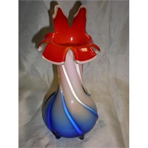 Blown Art Glass Vase Red. Beautifully made with an eye catching red petal top. Beautiful color combination.</em></td>
