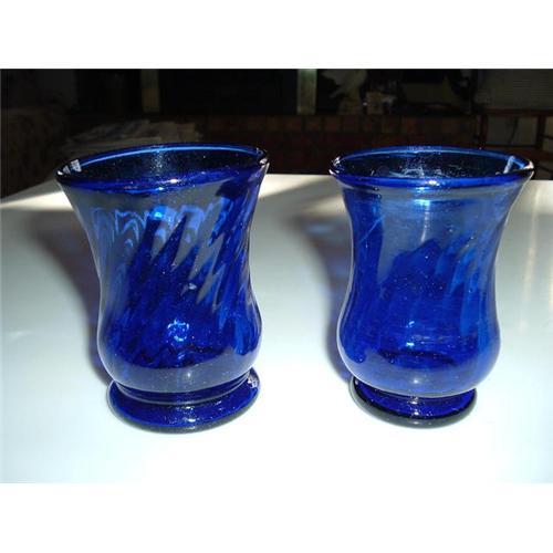 These are Handblown Cobalt Glass Tumblers. They are deep cobalt and have minor diferences, since they are handblown. They are 3-3/4" tall.