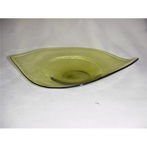 Blown glass dish. 16 3/4" long x 12" wide x 3 3/4" tall. Clear green glass, Modern design.