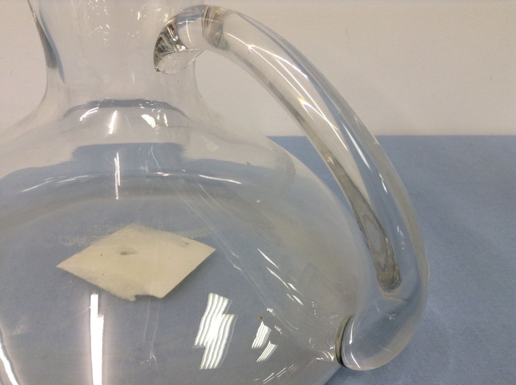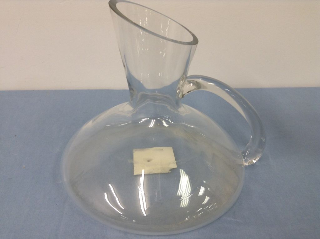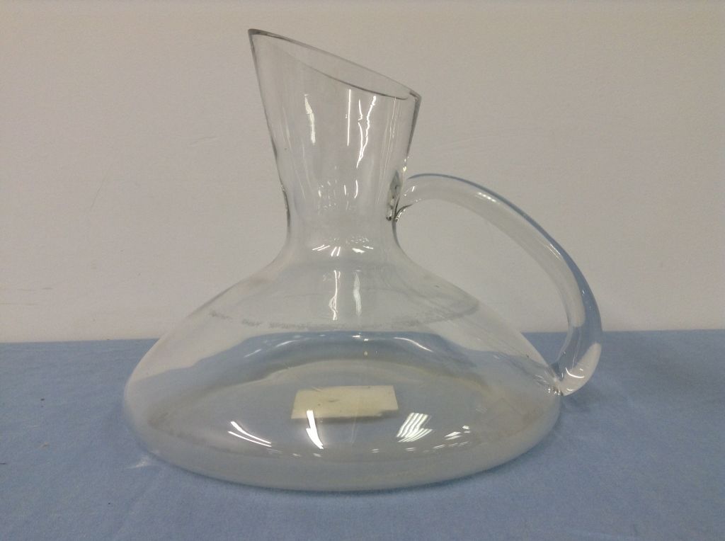 Blown Glass Pitcher With Applied Handle (7.5" high, 9" Bottom Diameter)