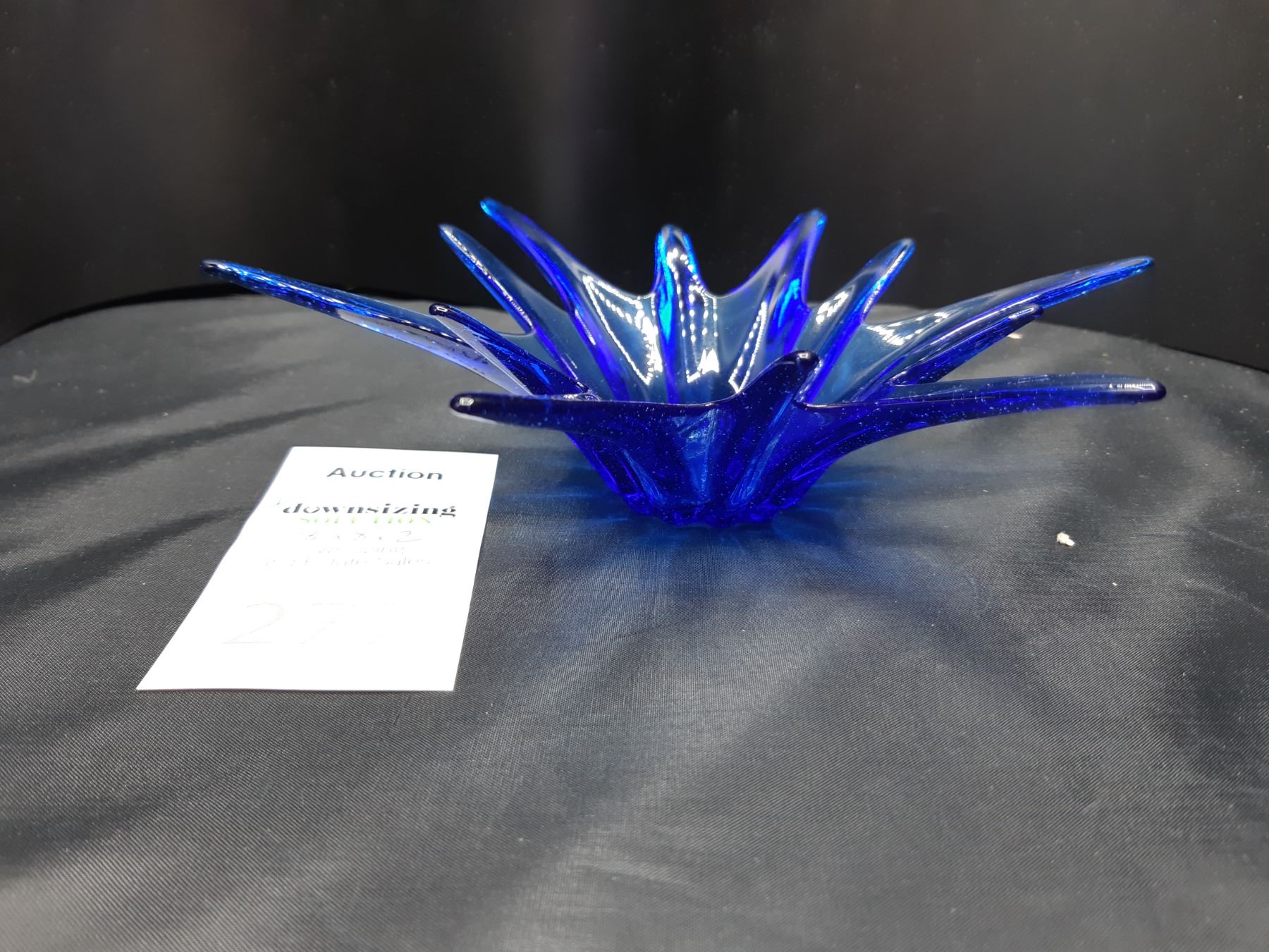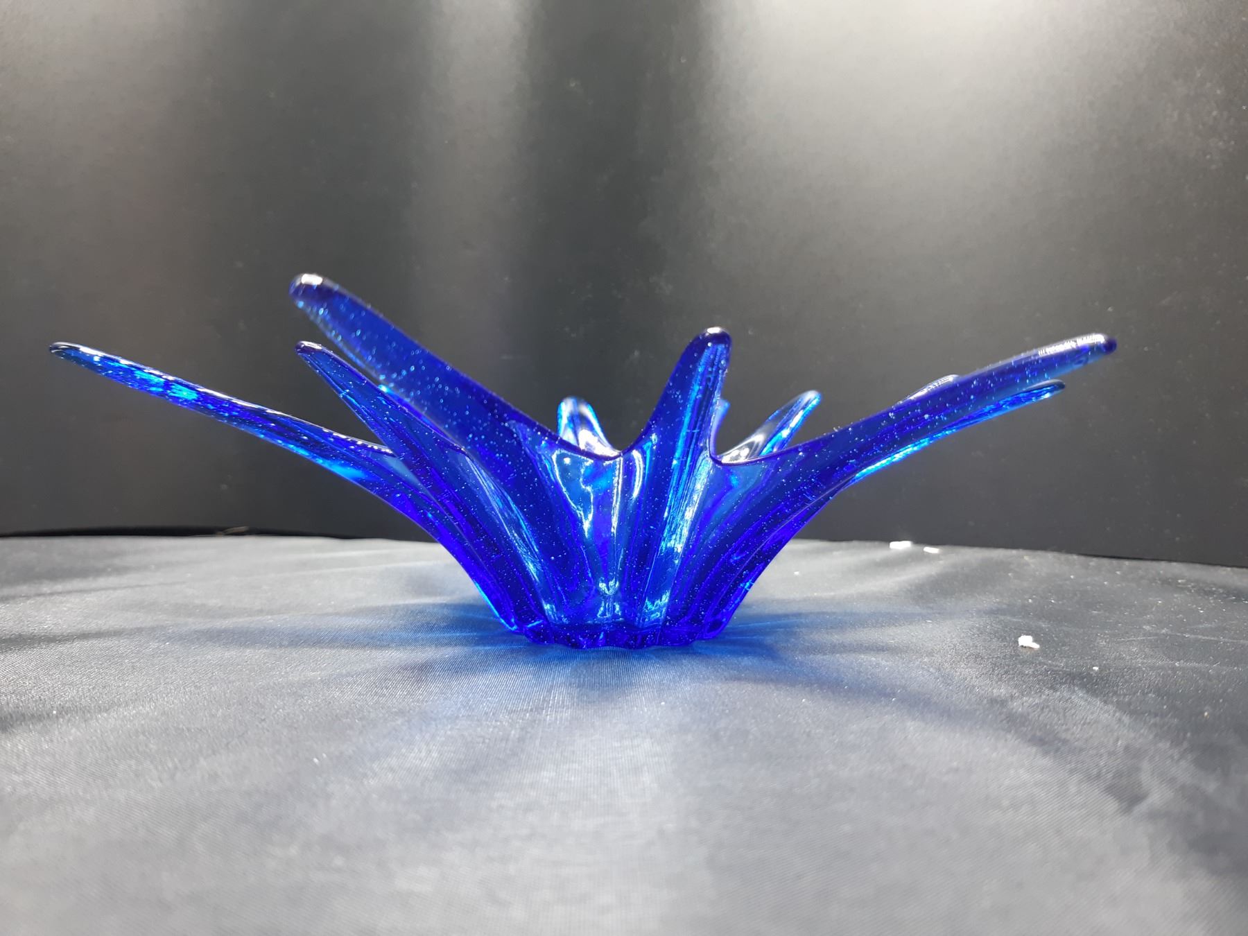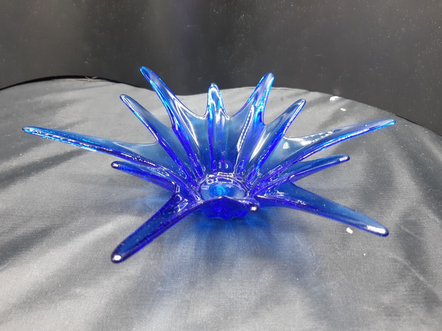 Blue starburst blown glass dish 8x8x2 Pickup at 9 am