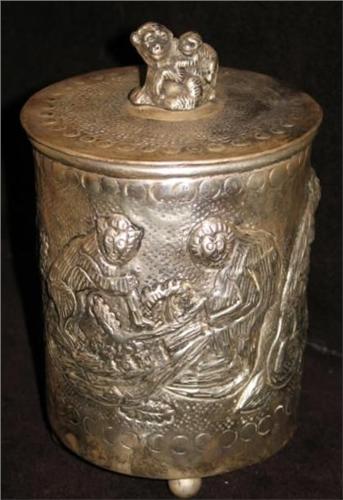Blown Out Silverplate Monkey Humidor, 7 x 5" dia.