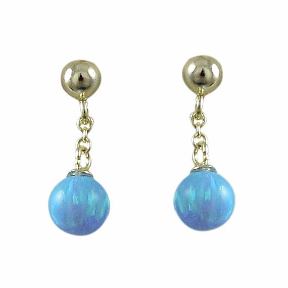 Blue 6Mm Opal Ball On Gold Tone Sterling Silver Post Long Earrings, 18Mm Long
