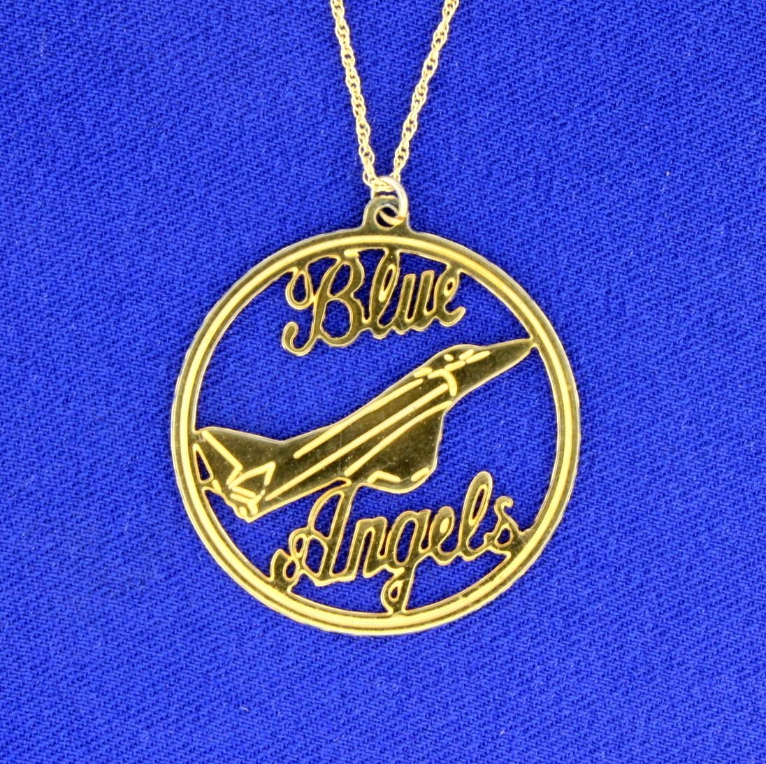 14K yellow gold, the pendant is 1 1/4 inches in diameter on a 18 inch chain. 2.5g