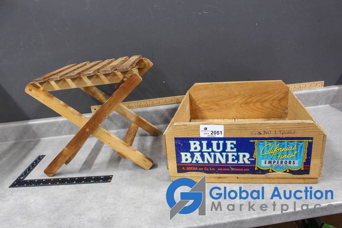 Blue Banner Wooden Crate & Wooden Collapsible Side Table