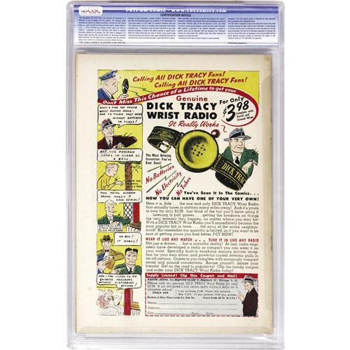 <B>Blue Beetle #50 Davis Crippen ("D" Copy) pedigree (Fox Features Syndicate, 1947) CGC VF/NM 9.0 Off-white pages.</B></I> The superheroics of the Blue Beetle are nice, but what makes this book so collectible is artwork by one of the masters of "good girl" drawing, Jack Kamen. Place your bid as soon as you can, we'll leave the "headlights" on for you! Overstreet 2006 VF/NM 9.0 value = $950; NM- 9.2 value = $1,300. CGC census 6/06: 3 in 9.0, 1 higher. <I>From the Crippen Collection.</B></I> <BR><BR><B>Important notice:</B> Heritage usually auctions material at the rate of 200-250 lots per hour. On some occasions eBay Live bid software or the Internet may not be able to keep up with the pace of the auction. We recommend placing a realistic absentee bid now as insurance to avoid disappointment. Occasionally the auctioneer may eliminate or reject an eBay Live bid, and the auctioneer may also reopen a lot after the close of the eBay live bidding (usually because we missed an audience bid), and may reject your bid even if it shows you as the winning bidder. By bidding via eBay Live, you agree that Heritage may award the lot to another bidder at its sole discretion under the circumstances described above or any other reasonable circumstances. Since eBay bids are not shown to us until we open the lot on the floor, we treat those bids just like floor bids. In most cases the floor responds before the eBay bid is presented to us, due to Internet lag time, so for consistency we have made it a policy that floor bids are always considered first over tie eBay live bids. Also please note that all Heritage lots purchased through eBay Live carry a 22.5% Buyer's Premium. Please make sure you read the Terms and Conditions before you bid. This lot is being auctioned in conjunction with a live floor auction by Heritage Auction Galleries. All final auction and invoice information will be supplied by Heritage Auction Galleries, and all other information should be considered preliminary. Lot:41001 <BR><BR><B>Winning Notification and Billing:</B> After the FINAL session in this auction is complete, Heritage will send e-mail and snail mail invoices. This process normally takes several days. All final auction and invoice information will be supplied by Heritage Auction Galleries, and all other information should be considered preliminary. <BR><BR>This auction will be conducted on a live auction floor and over the Internet through eBay Live. If you choose to place an absentee bid, please take a moment to <font color='#0000ff'><u><a href='http://pages.ebay.com/liveauctions/help/before/laabsentee.html'>learn how eBay Live absentee bidding works</a></u></font><font color='#000000'>