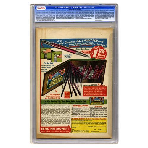 50. Since we cannot examine encapsulated notes or comics, they are sold "as is" without our grading opinion, and may not be returned for any reason. Auctioneer shall not be liable for any patent or latent defect or controversy pertaining to or arising from any encapsulated collectible. In any such instance, purchaser's remedy, if any, shall be solely against the service certifying the collectible.