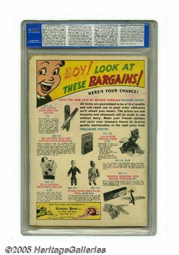 50. Auctioneer offers no opinion as to the validity of a grade assigned by any third-party grading service. Since we cannot examine C.G.A. encapsulated notes or Comics Guaranty Corporation (CGC) encapsulated comics, they are sold "as is" without our grading opinion, and may not be returned for any reason. Auctioneer shall not be liable for any patent or latent defect or controversy pertaining to or arising from any encapsulated collectible. In any such instance, purchaser's remedy, if any, shall be solely against the certification service certifying the collectible.