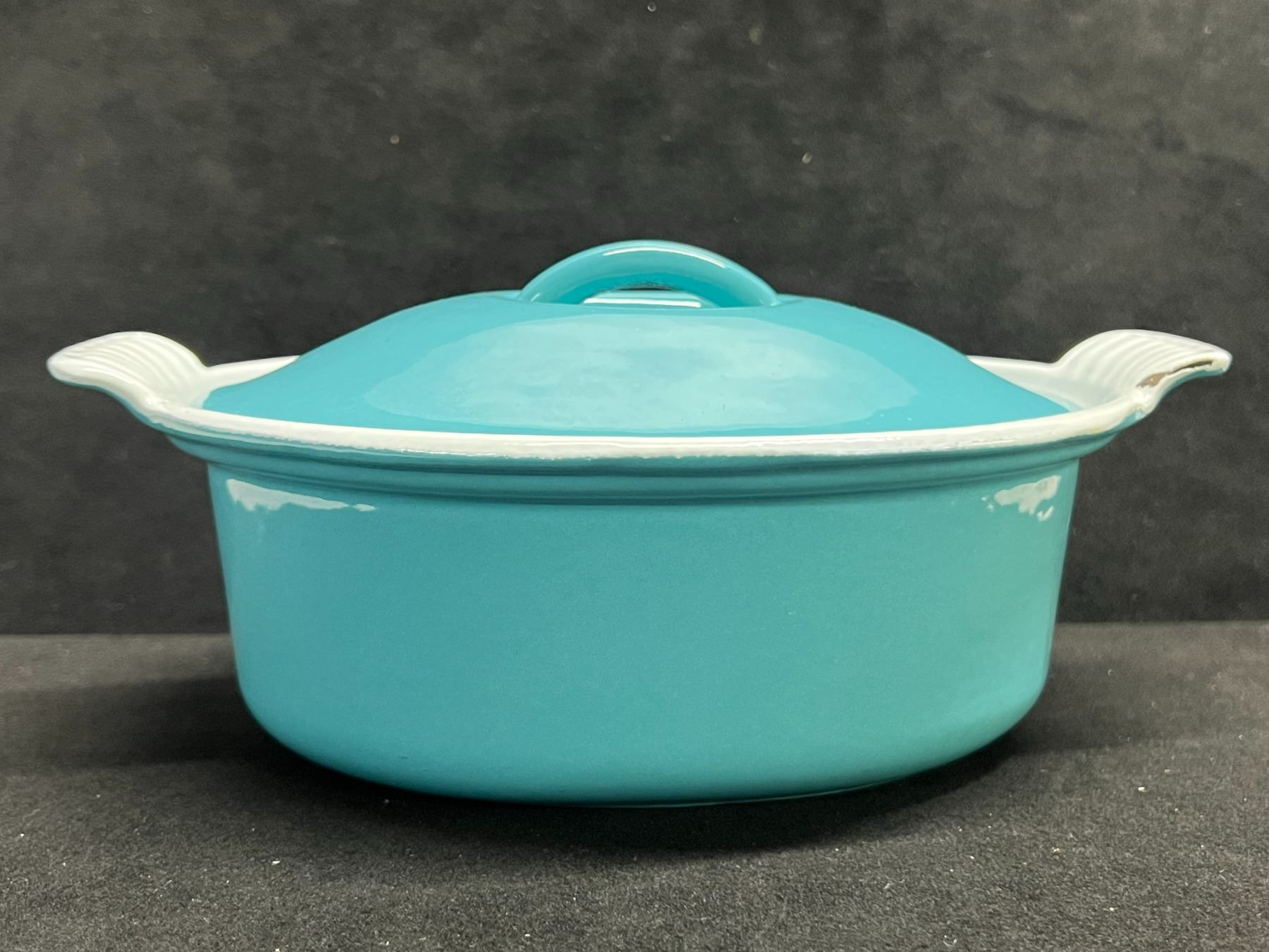 Blue Cast Iron Enamel Casserole w/Lid - Smaller (Approx: 8.5 x 5.5" )