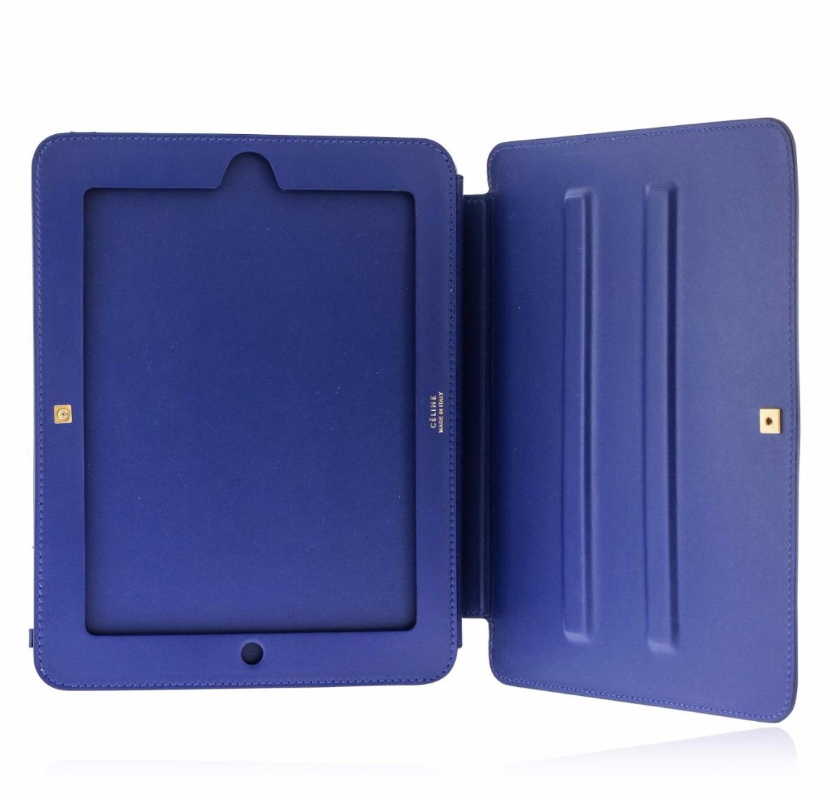 One blue and taupe Celine iPad case. New with tags attached. Dimensions of case 8 x 10. Includes Celine dust bag.