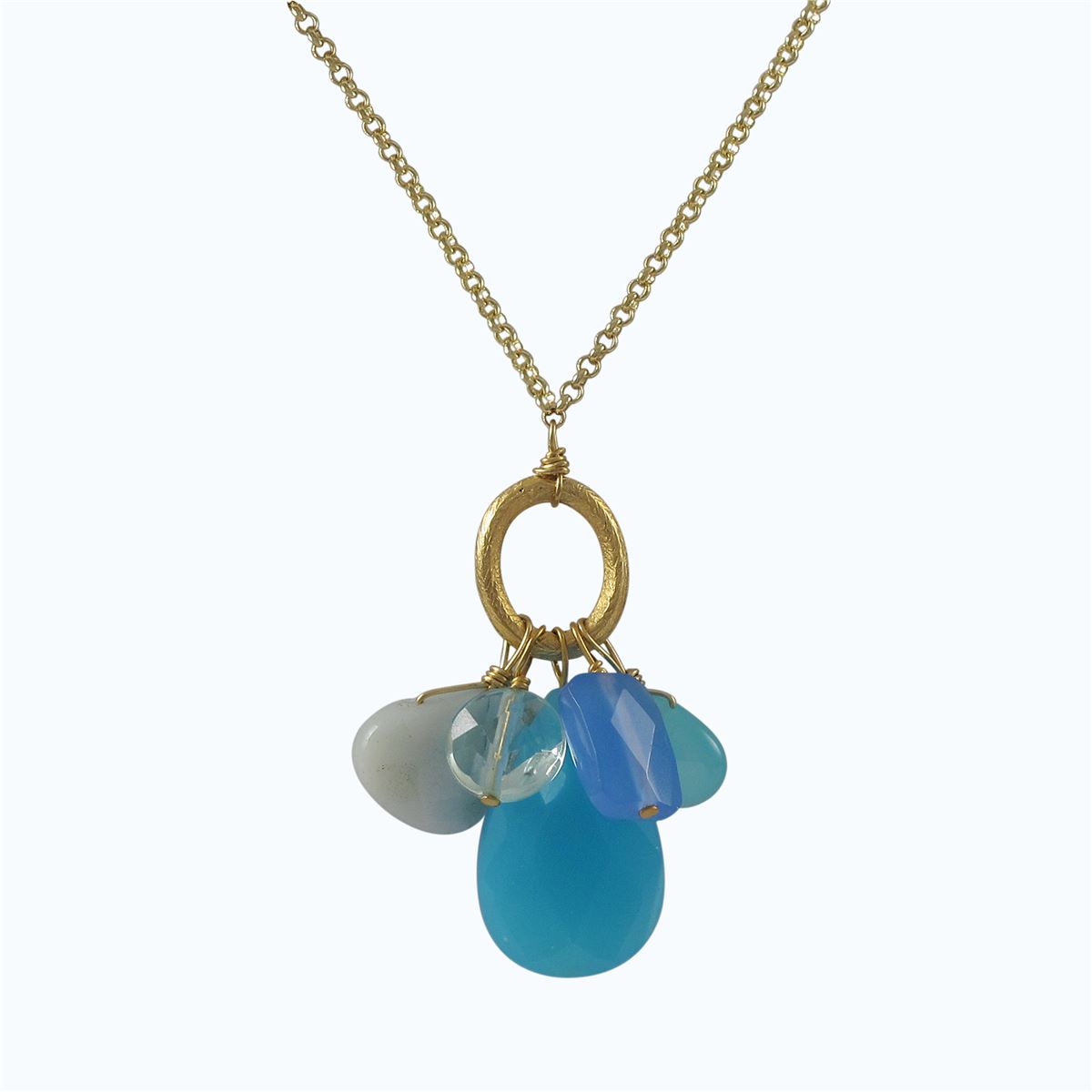 Blue Chalcedony Combination Semi Precious Stones On Gold Tone Brass Chain -16" 2"