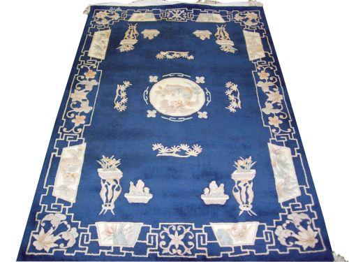 Blue Chinese Accent Rug. Good condition. 4 X 6 oblong.