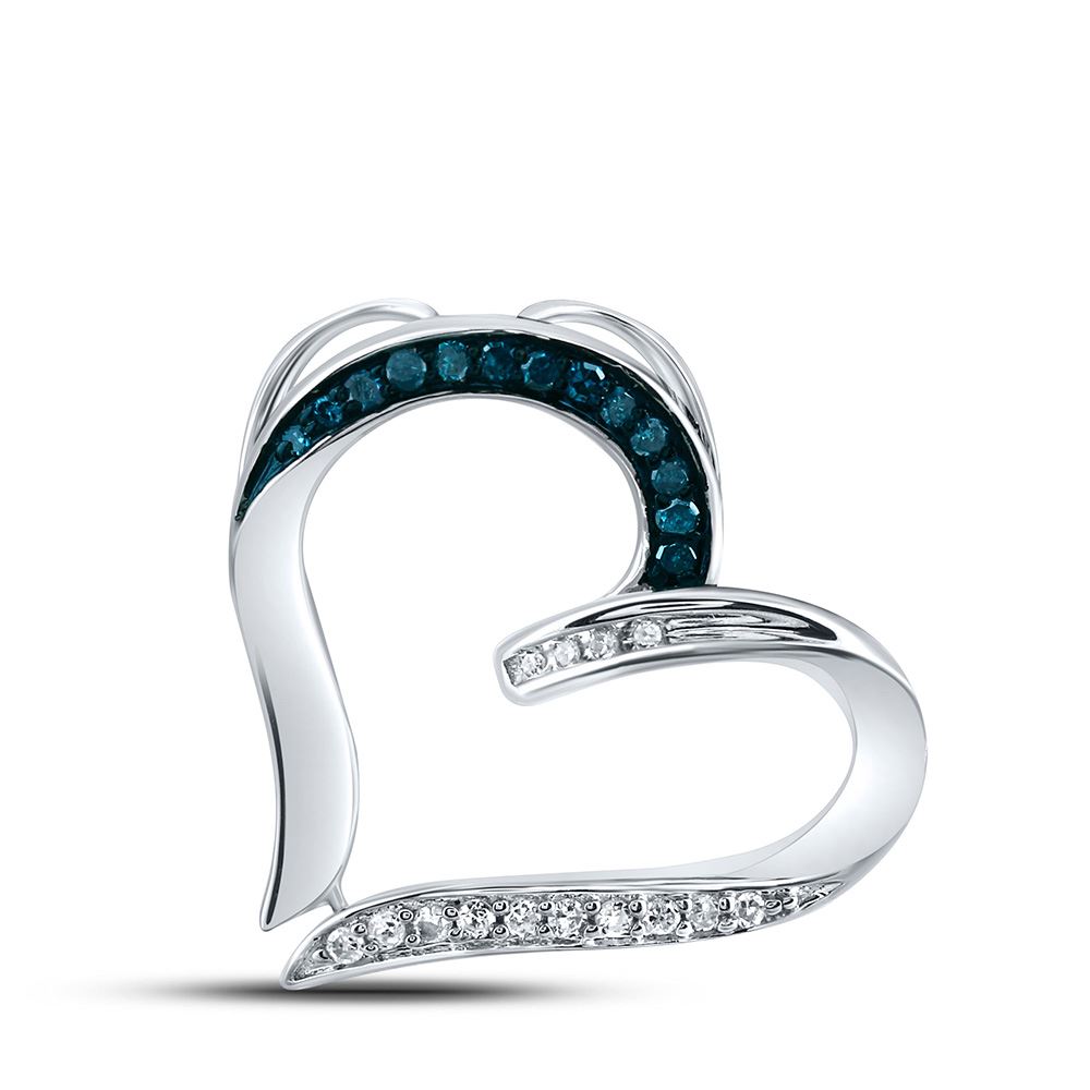 Sterling Silver Womens Round Blue Color Enhanced Diamond Bisected Heart Pendant 1/10 Cttw