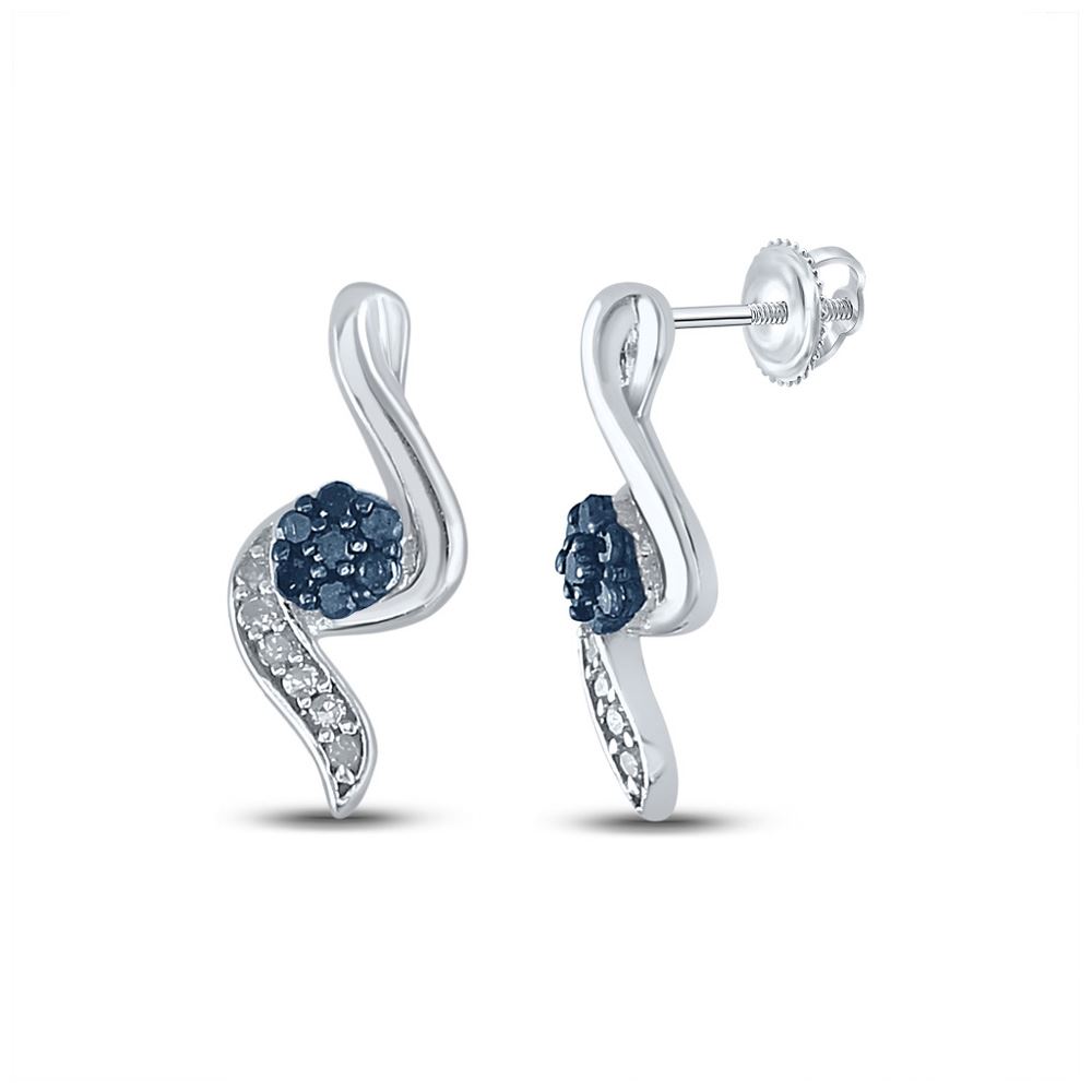Sterling Silver Womens Round Blue Color Enhanced Diamond Cluster Stud Earrings 1/5 Cttw