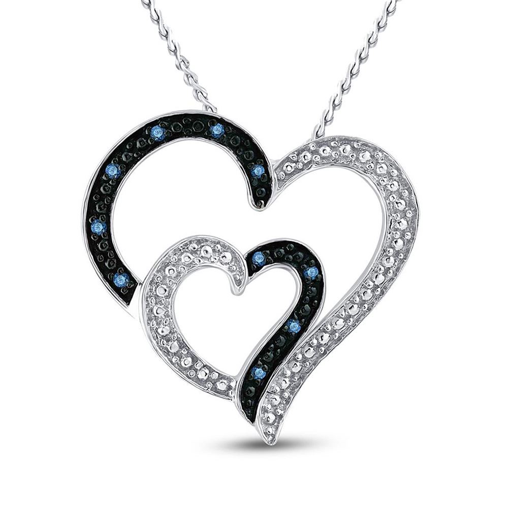 Sterling Silver Womens Round Blue Color Enhanced Diamond Heart Pendant 1/20 Cttw