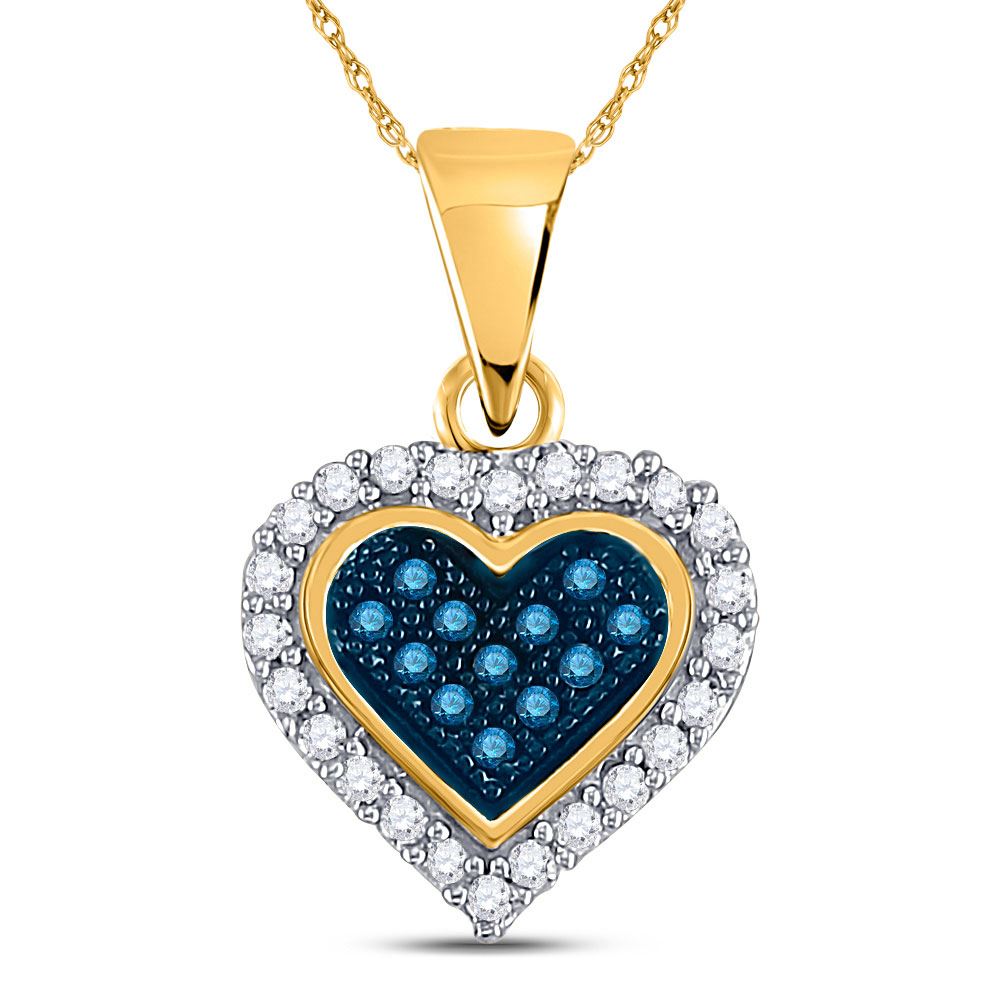 10kt Yellow Gold Womens Round Blue Color Enhanced Diamond Heart Pendant 1/8 Cttw