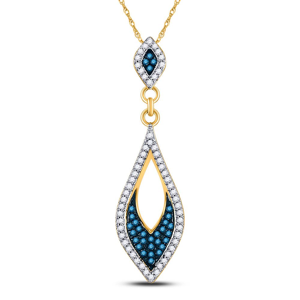 10kt Yellow Gold Womens Round Blue Color Enhanced Diamond Oval Pendant 1/5 Cttw