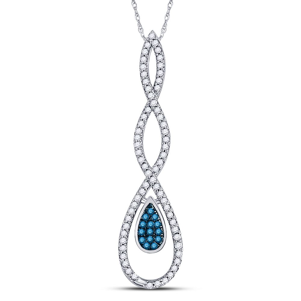 10kt White Gold Womens Round Blue Color Enhanced Diamond Teardrop Pendant 1/5 Cttw