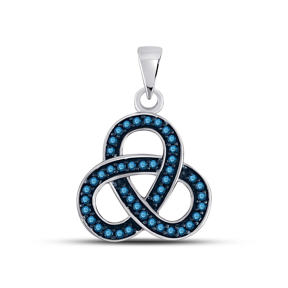 Sterling Silver Womens Round Blue Color Enhanced Diamond Triquetra Pendant 1/4 Cttw