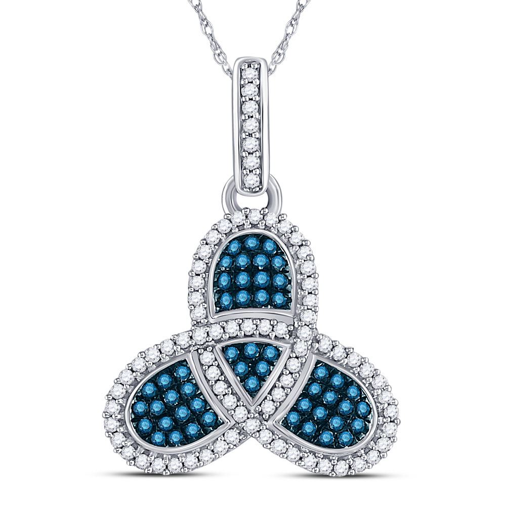 10kt White Gold Womens Round Blue Color Enhanced Diamond Triquetra Pendant 3/8 Cttw