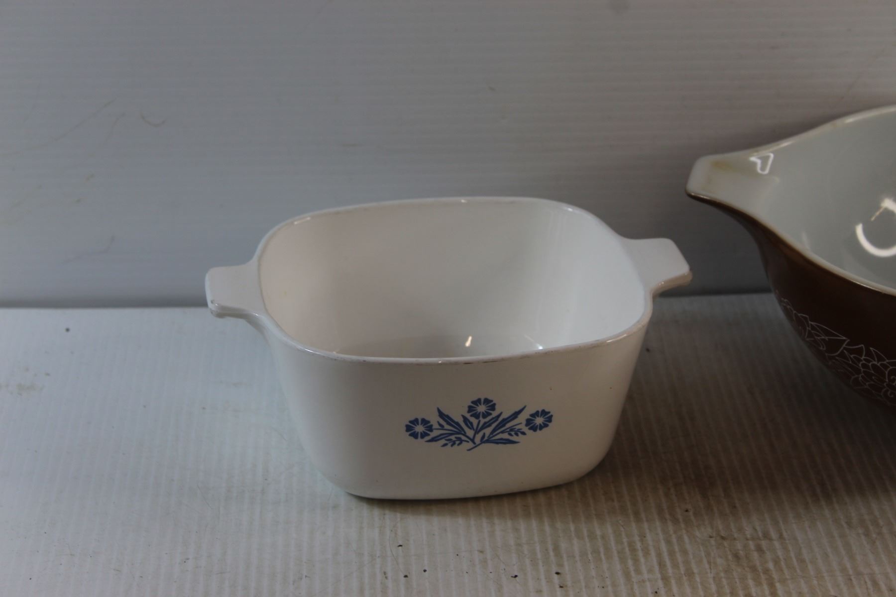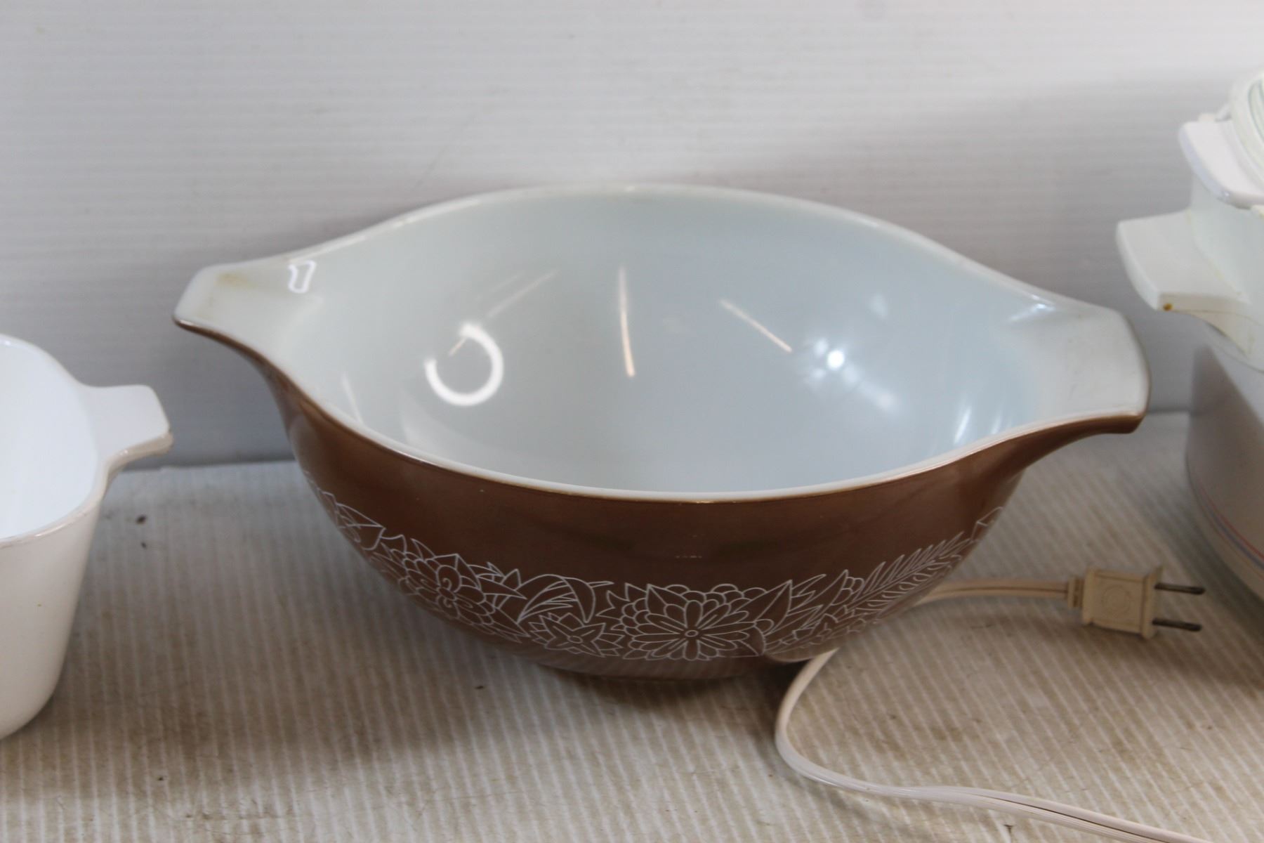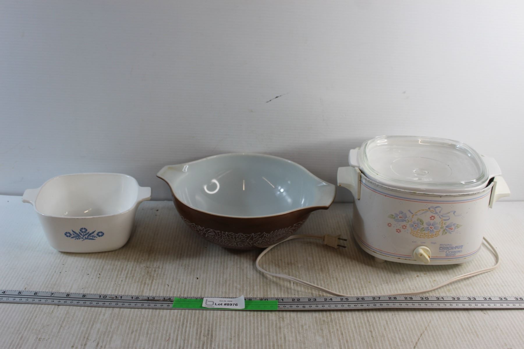 Blue Corn Flower Casserole Dish, Pyrex Ceramic Bowl and Rival Crock Pot with Corning Ware - As Is