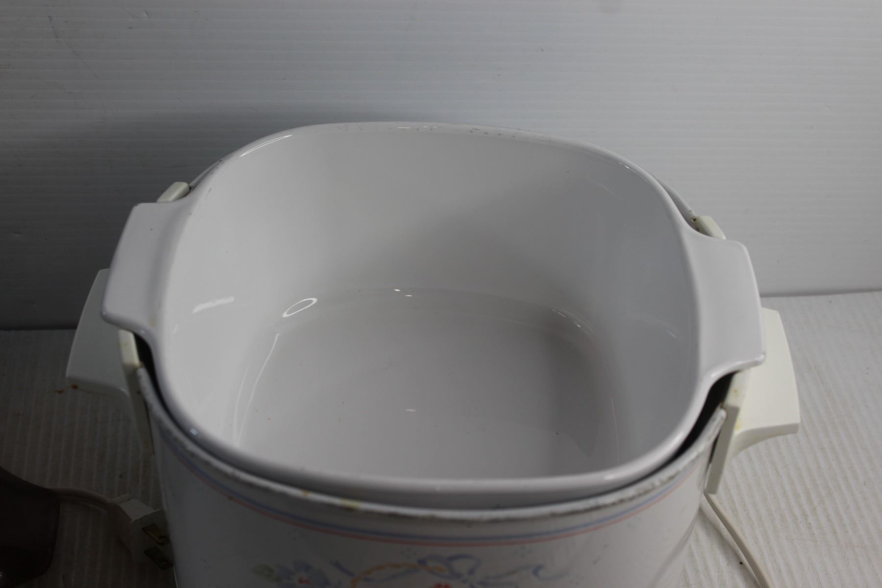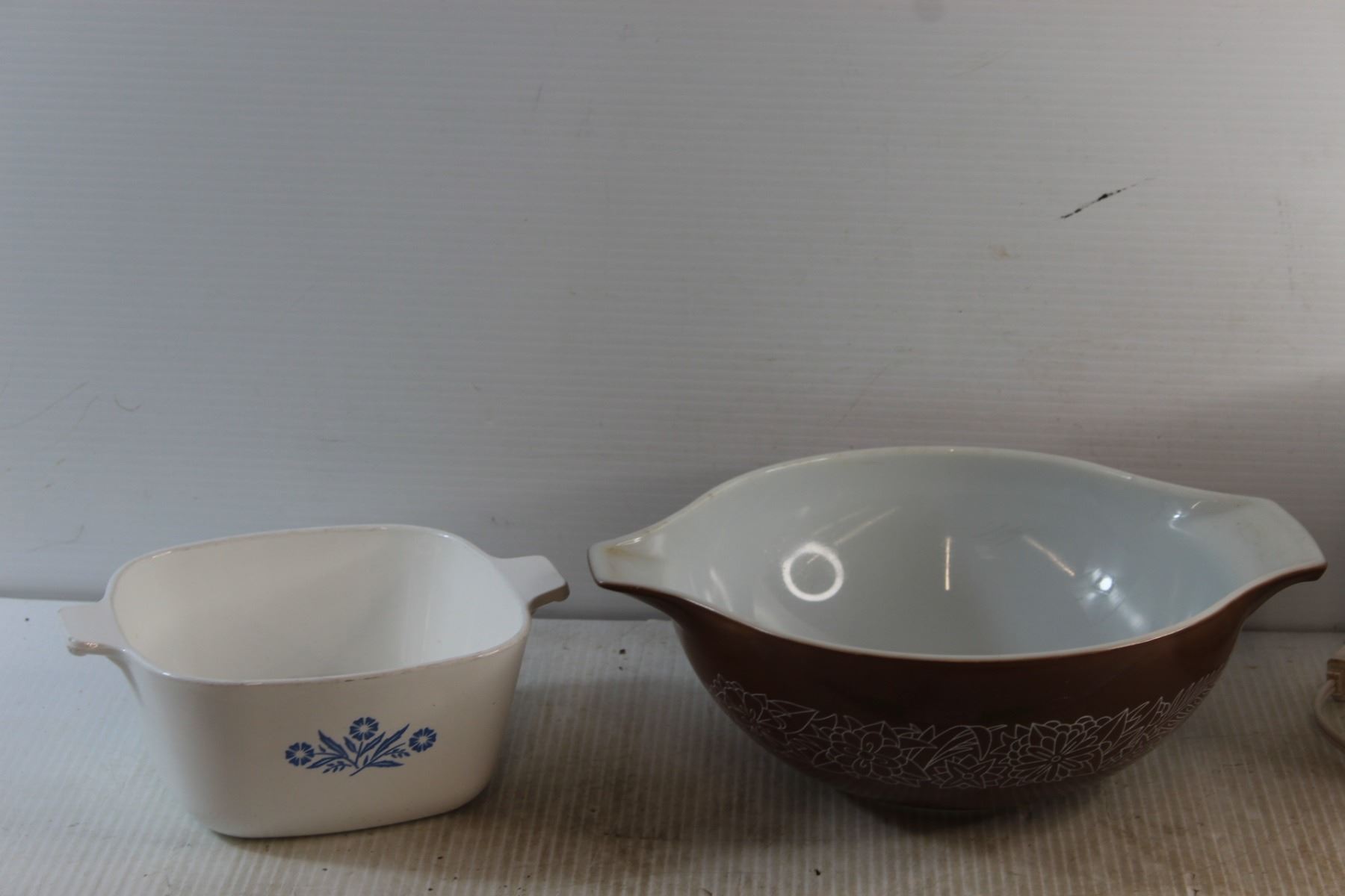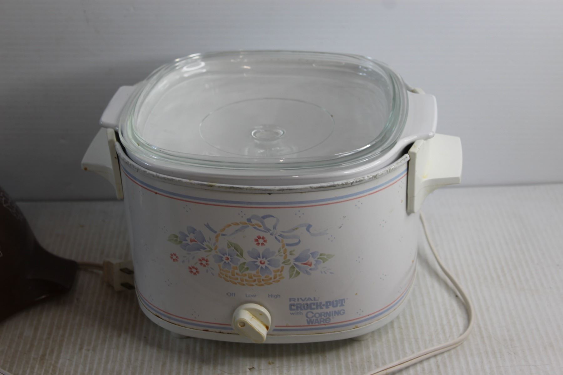 Blue Corn Flower Casserole Dish, Pyrex Ceramic Bowl and Rival Crock Pot with Corning Ware - As Is
