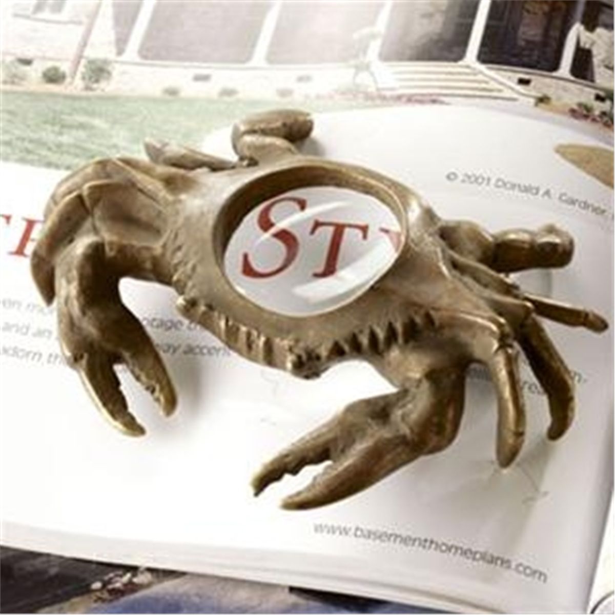 Blue Crab Magnifying Glass - 1.5"H X 5.5"W X 4"D - Brass & Glass