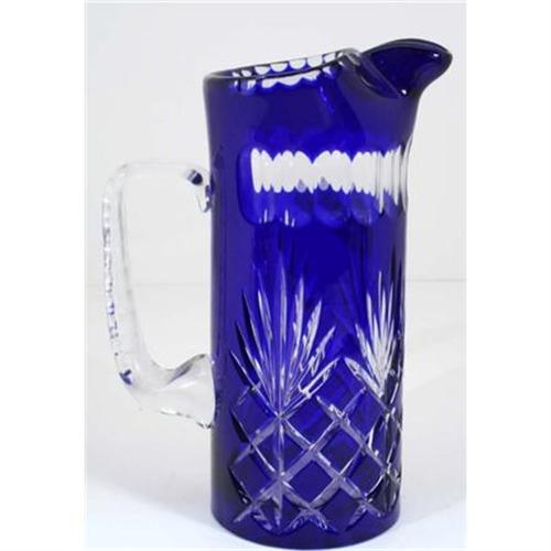 The beautifully decorative blue crystal pitcher would make a great touch to any collection. The decorative touches to it are the pineapple etched in pattern that goes around the lower portion of the pitcher. The pitcher measures 11.5? x 7?.