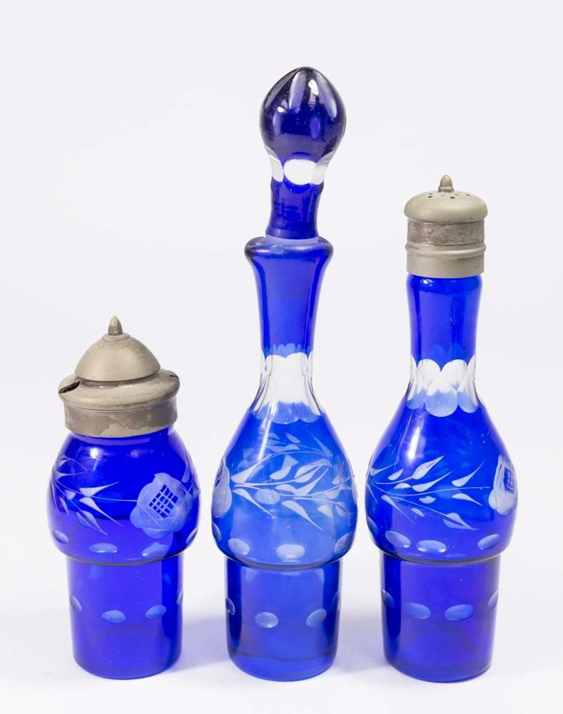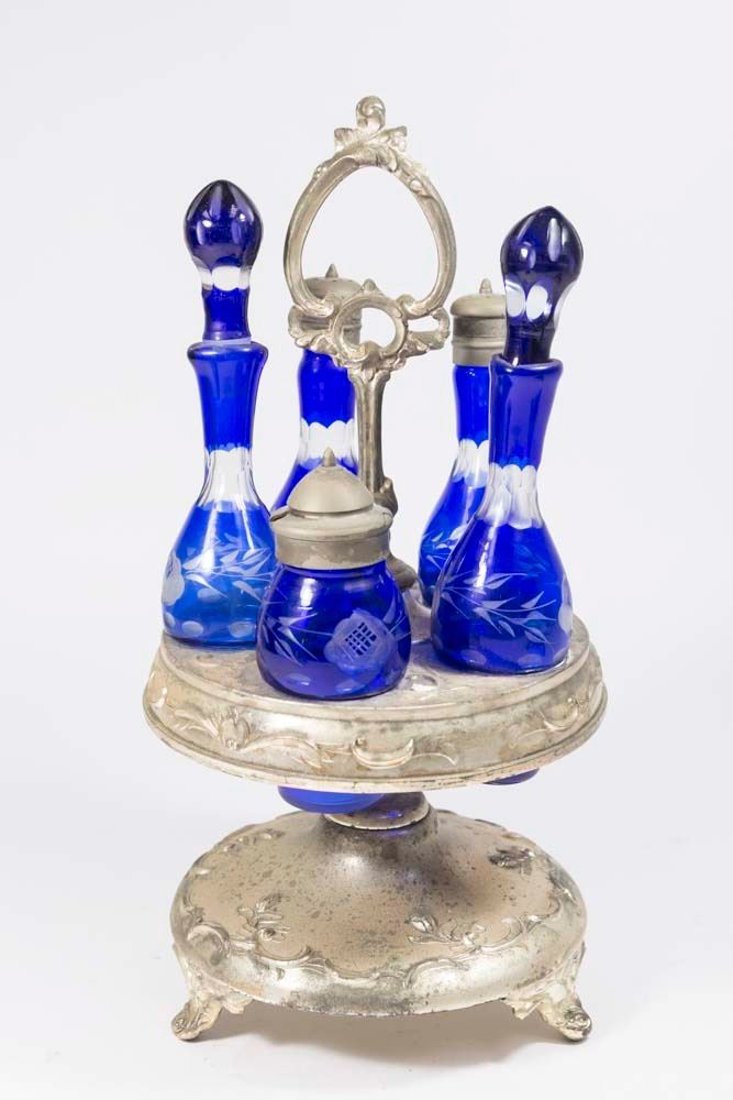 Approx. 15" H. (6061) Chip on spout of one. Metal pitted.