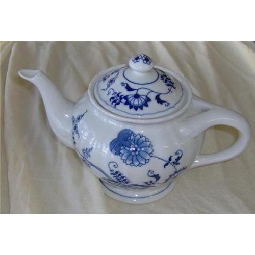 This full-size Blue Danube teapot is fine blue and white porcelain. The Blue Danube design re-interprets Meissen's 1700s German Onion pattern.</em></td>