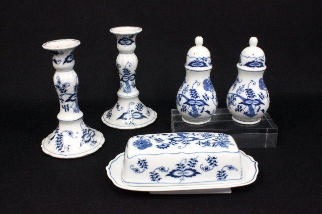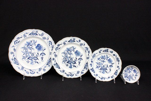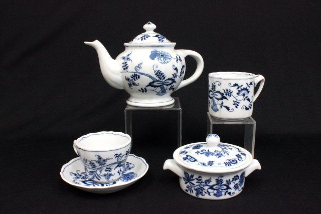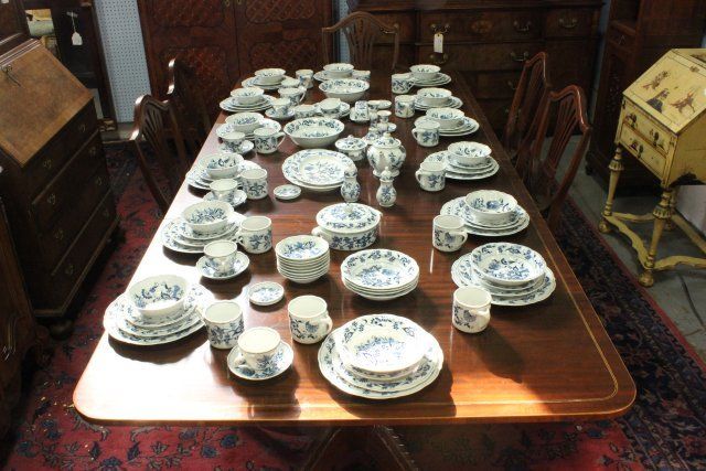 Blue Danube dinnerware set total 114 pcs 14 dinner, 14 luncheon, 18 cake, 12 cereal bowls, 5 soup bowls 8 berry bowls, 4 butter pats, 8 cups, 6 saucers, 14 mugs, large and small tray, 2 large bowls, teapot, covered veg dish, butter dish, sugar bowl, pair candlesticks.